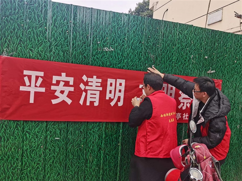 活動(dòng)中,志愿者與社區(qū)工作人員向居民發(fā)放倡議書(shū),呼吁社區(qū)居民進(jìn)一步樹(shù)立“安全文明、綠色環(huán)保”清明祭祀新風(fēng)尚,建議用鮮花祭祀、絲帶寄哀思、網(wǎng)絡(luò)祭掃等文明簡(jiǎn)約、綠色環(huán)保的祭掃方式來(lái)寄托哀思,營(yíng)造文明有序的祭祀環(huán)境。
