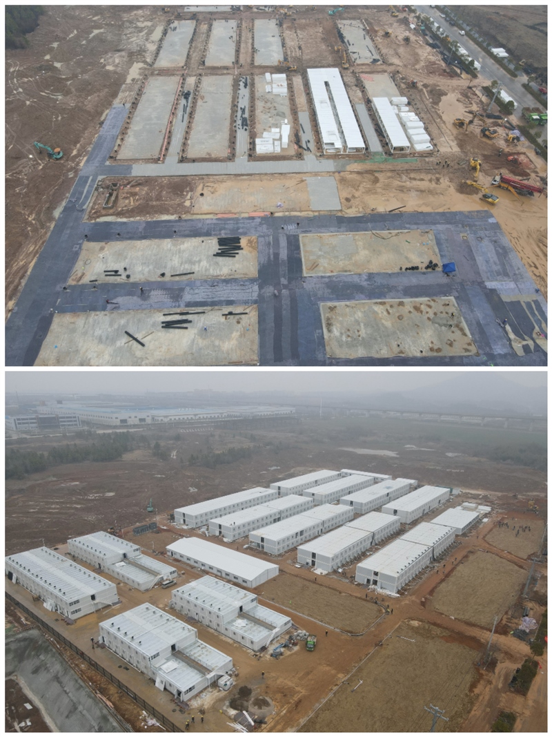 自1月21日宣州區(qū)疫情防控指揮部緊急部署由區(qū)國資集團(tuán)承建宣州區(qū)疫情防控臨時隔離點(diǎn)項(xiàng)目始,集團(tuán)即刻投入到緊張有序的搶建工作中。冬季施工難度相當(dāng)大,項(xiàng)目更是遭遇持續(xù)降雨、二次大雪和連續(xù)降溫,氣候條件十分不利。然而國資集團(tuán)不畏困難,不失時機(jī),抓住一切機(jī)會搶工程,不論白天、黑夜、刮風(fēng)還是下雨,始終緊抓建設(shè)不放松,克服持續(xù)陰雨天氣,大干6個晝夜,突擊144小時連續(xù)作業(yè),完成25000平方米混凝土澆筑。更是在春節(jié)期間不停工,不斷檔,頂著暴風(fēng)雪、克服春運(yùn)帶來的采購、人工、交通等一切不利因素,在元宵節(jié)前完成準(zhǔn)備區(qū)188套、隔離區(qū)744套打包房吊裝工作。